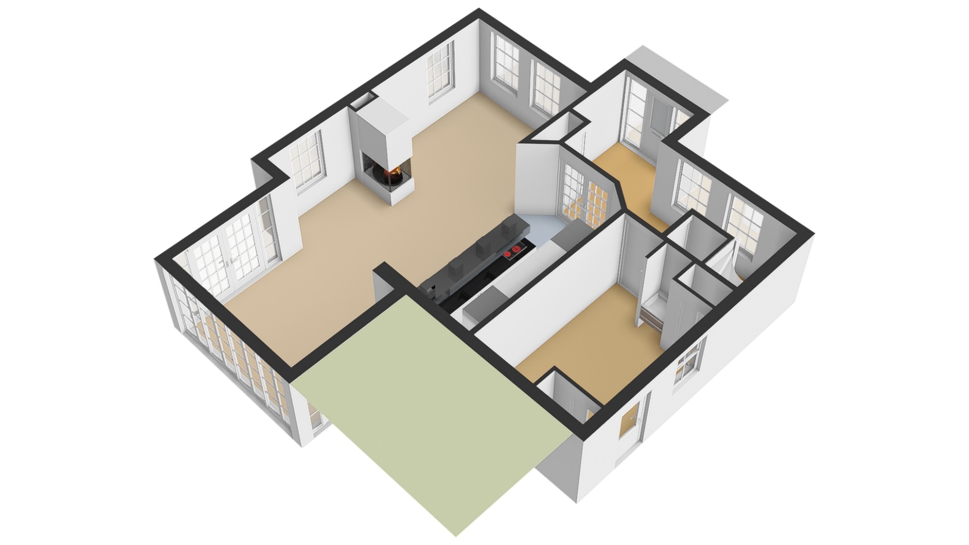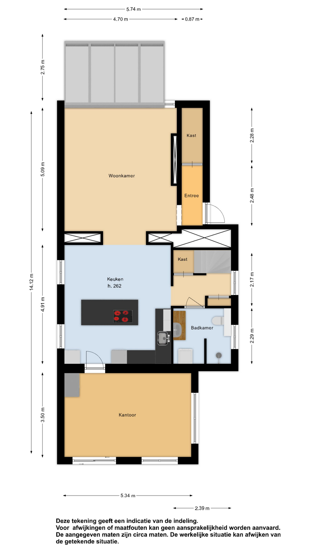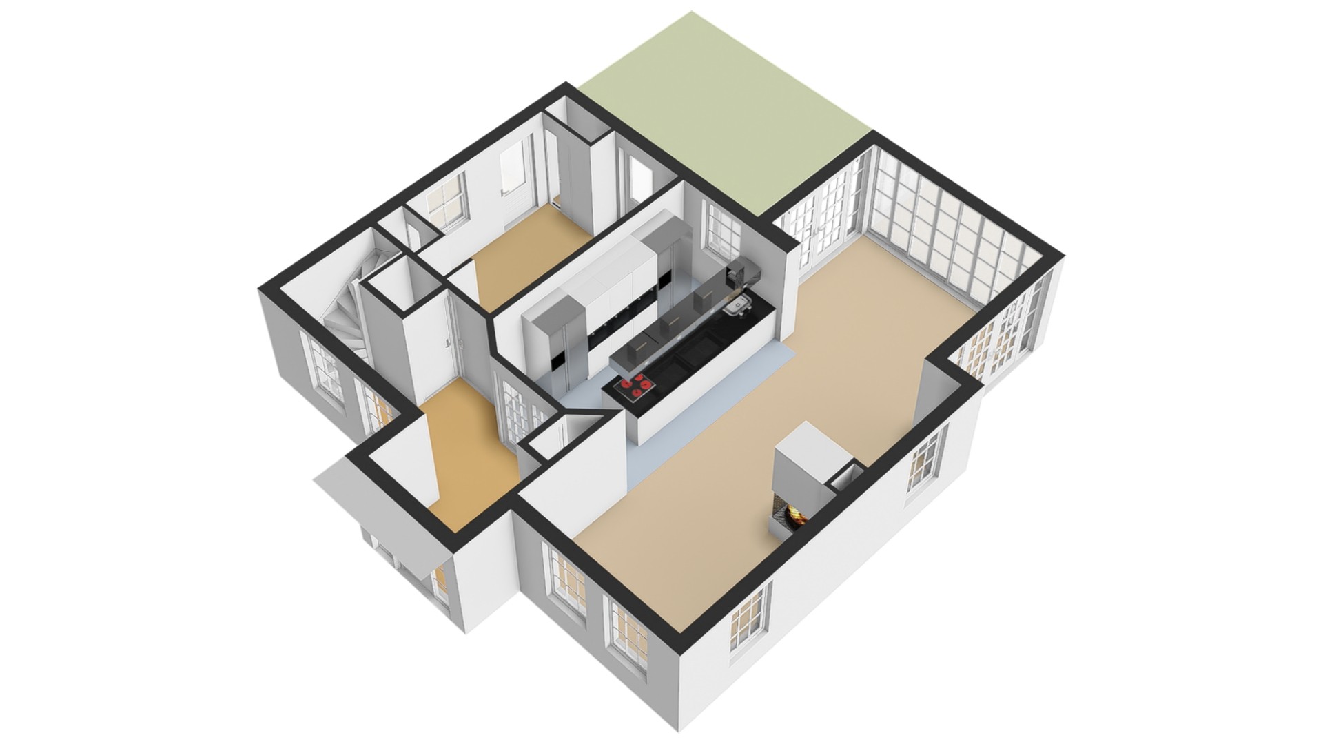 In het bijgebouw kunt prima een kantoor of praktijkruimte inrichten. Op de parterre is een ruime woonkamer en een open moderne keuken met inbouwapparatuur aanwezig. De moderne lichte keuken in L-vorm is extra voorzien van een kookeiland. Via de keuken kunt u het naastgelegen kantoor bereiken. Op de begane grond treft u eveneens een moderne badkamer met inloopdouche, hangcloset en een apart wastafelmeubel. In deze ruimte is tevens de mogelijkheid voor een wasmachine en drogeropstelling. De 1e verdieping is via een vaste trap te bereiken. Hier is een ruime slaapkamer aanwezig. Het bijgebouw is zeer smaakvol afgewerkt en met airco’s uitgevoerd.