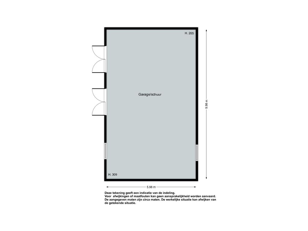 Garage / schuur: achter in de tuin is een grote garage van zo’n 60 m² aanwezig. De garage is uitgevoerd met dubbele deuren. Bovendien is de garage ook voorzien van daglicht. Houdt u van klussen, dan heeft u de perfecte plek te pakken. In deze garage heeft u voldoende ruimte om uw werkzaamheden te verrichten. Daarnaast is de garage groot genoeg voor het stallen van uw auto’s, motoren, fietsen. Uiteraard blijft er nog voldoende ruimte over voor uw tuingereedschap en tuinmeubelen.
