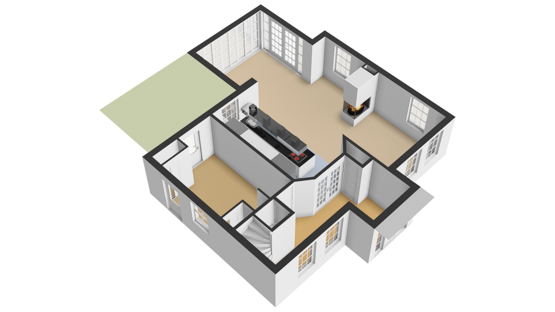 Woonkamer: Via de hal komt u middels openslaande deuren in de ruime woonkamer met aan de voorzijde een ruime zitgelegenheid. In deze ruimte kunt u prima een loungebank plaatsen. Voor de romantische avondjes is de fijne, strak vormgegeven gashaard aanwezig. Een fijn muziekje opzetten of lekker Netflixen op de bank met het surroundsysteem vol aan ( lekker nietwaar, vrijstaand wonen..) en genieten maar! Centraal in deze ruimte vindt u de zeer ruime luxe keuken.