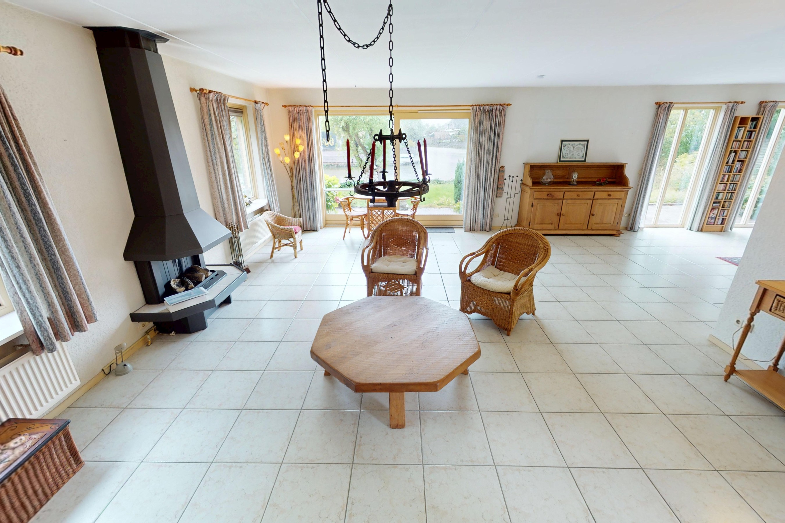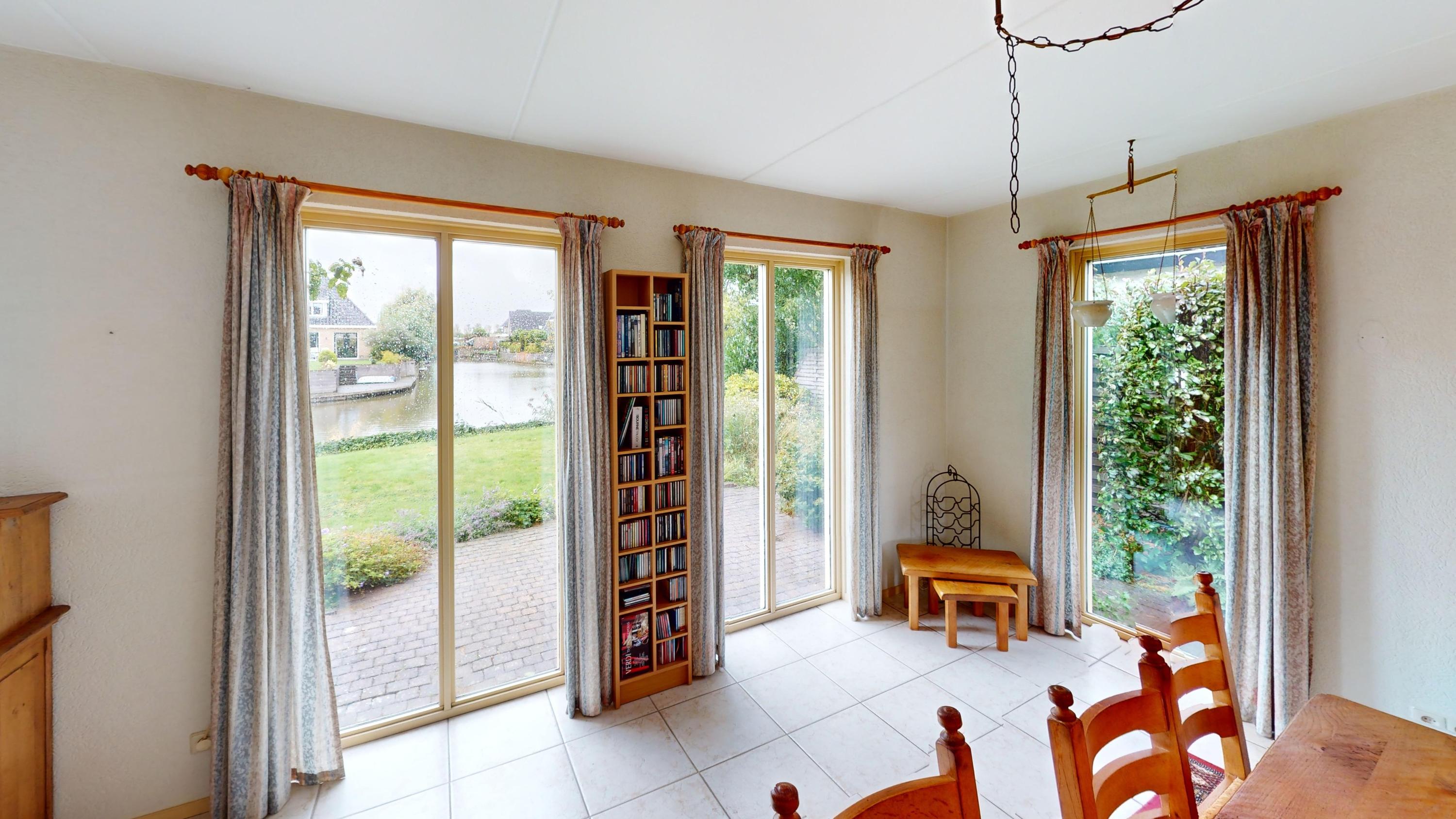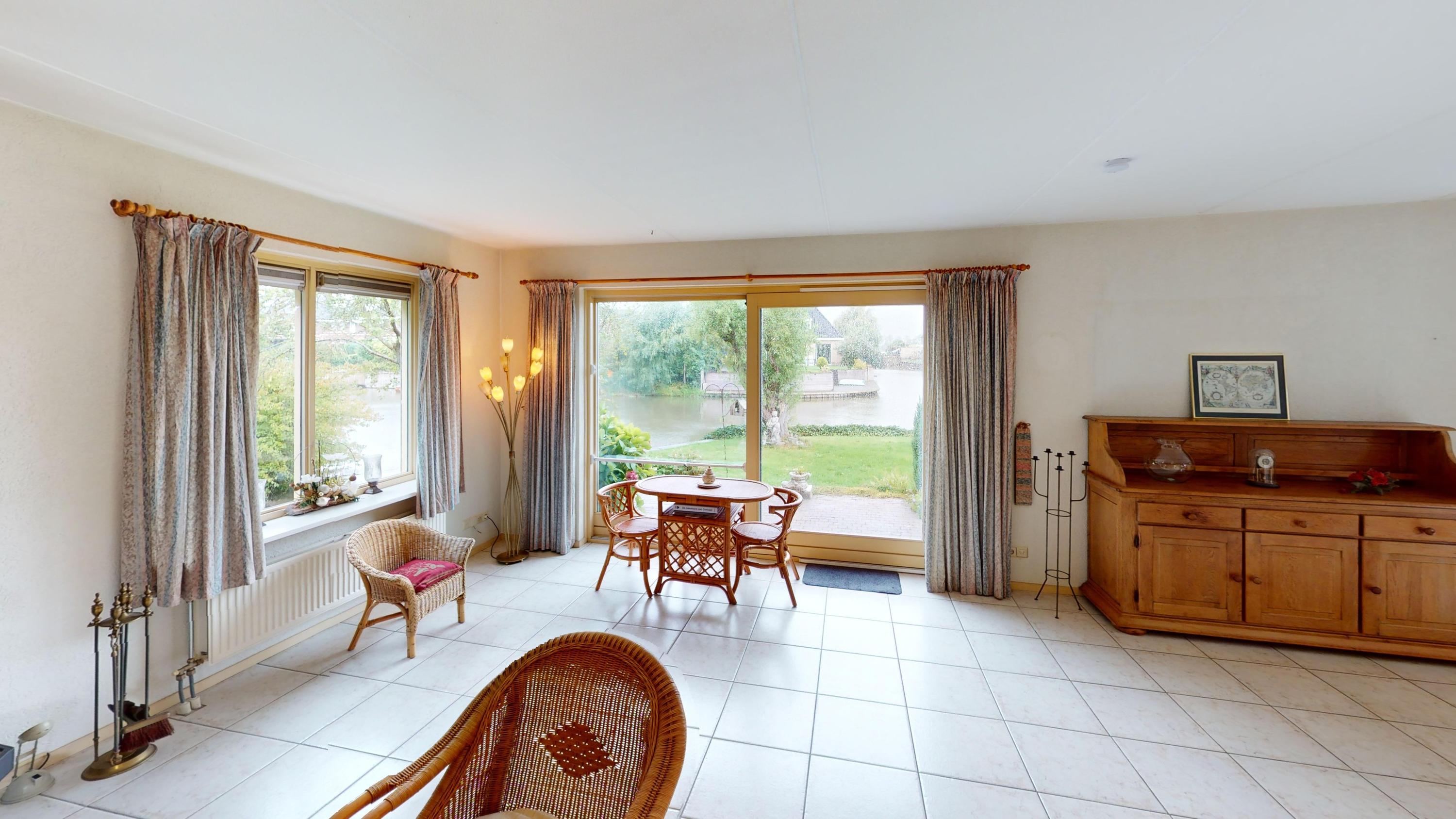Vanuit de hal stapt u de centrale plek van de woning binnen! Deze riante woonkamer is een lust voor het oog! U zult verrast zijn door de lichtinval in deze brede woonkamer! Door de vele ramen heeft u enorm veel licht en zon in de woonkamer! Een heerlijke plek om te vertoeven. De schuifpui vormt een fraaie overgang naar de achtergelegen tuin. U kunt in deze woonkamer prima een heerlijk loungebank plaatsen met fraai zicht op het water! De gashaard draagt, samen met de plavuizenvloer met comfortabele vloerverwarming, bij aan de fijne sfeer die u hier kunt creëren! Komt u maar eens aan de eettafel in de woonkamer plaatsnemen en geniet van het uitzicht aan de achterzijde van de woning!