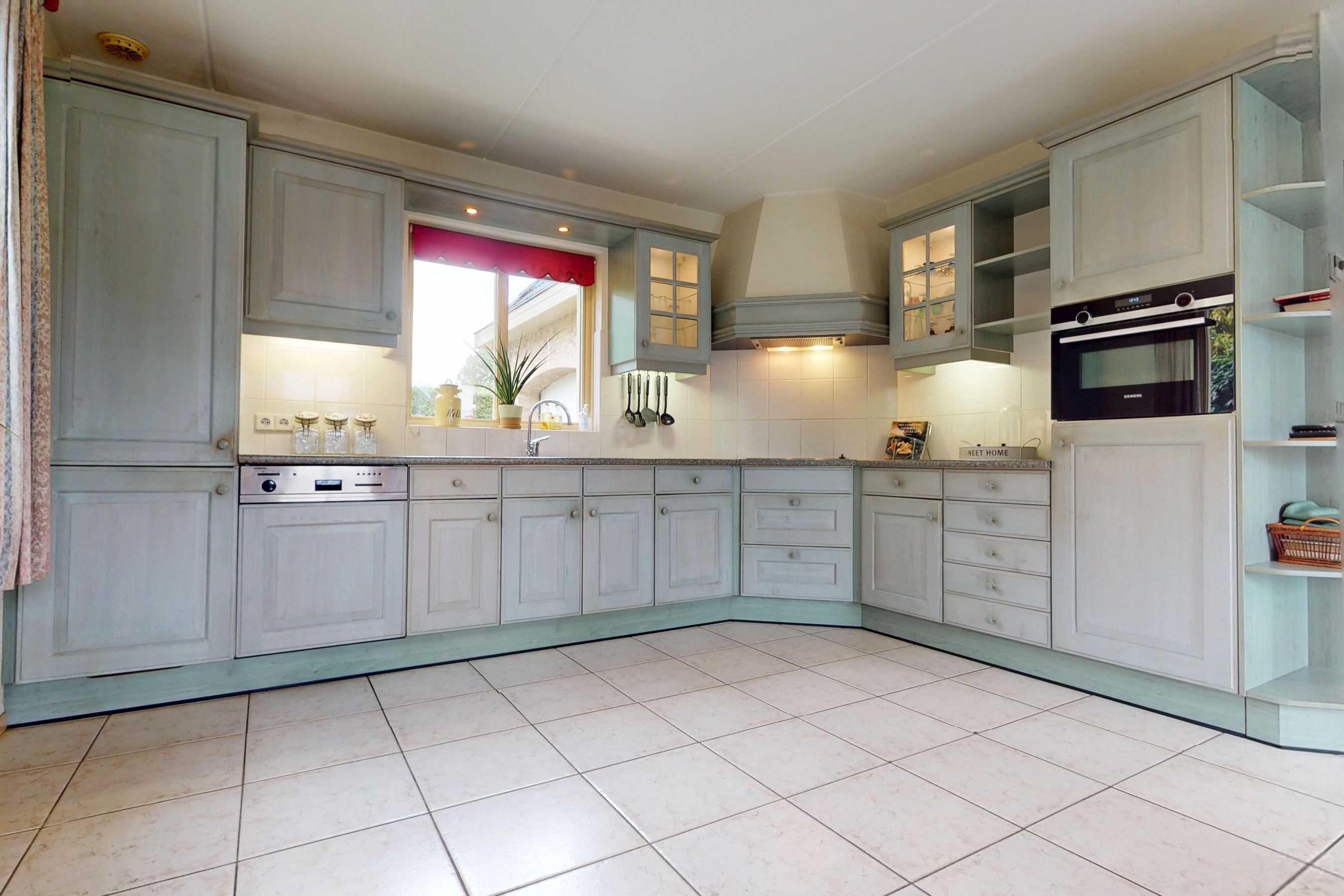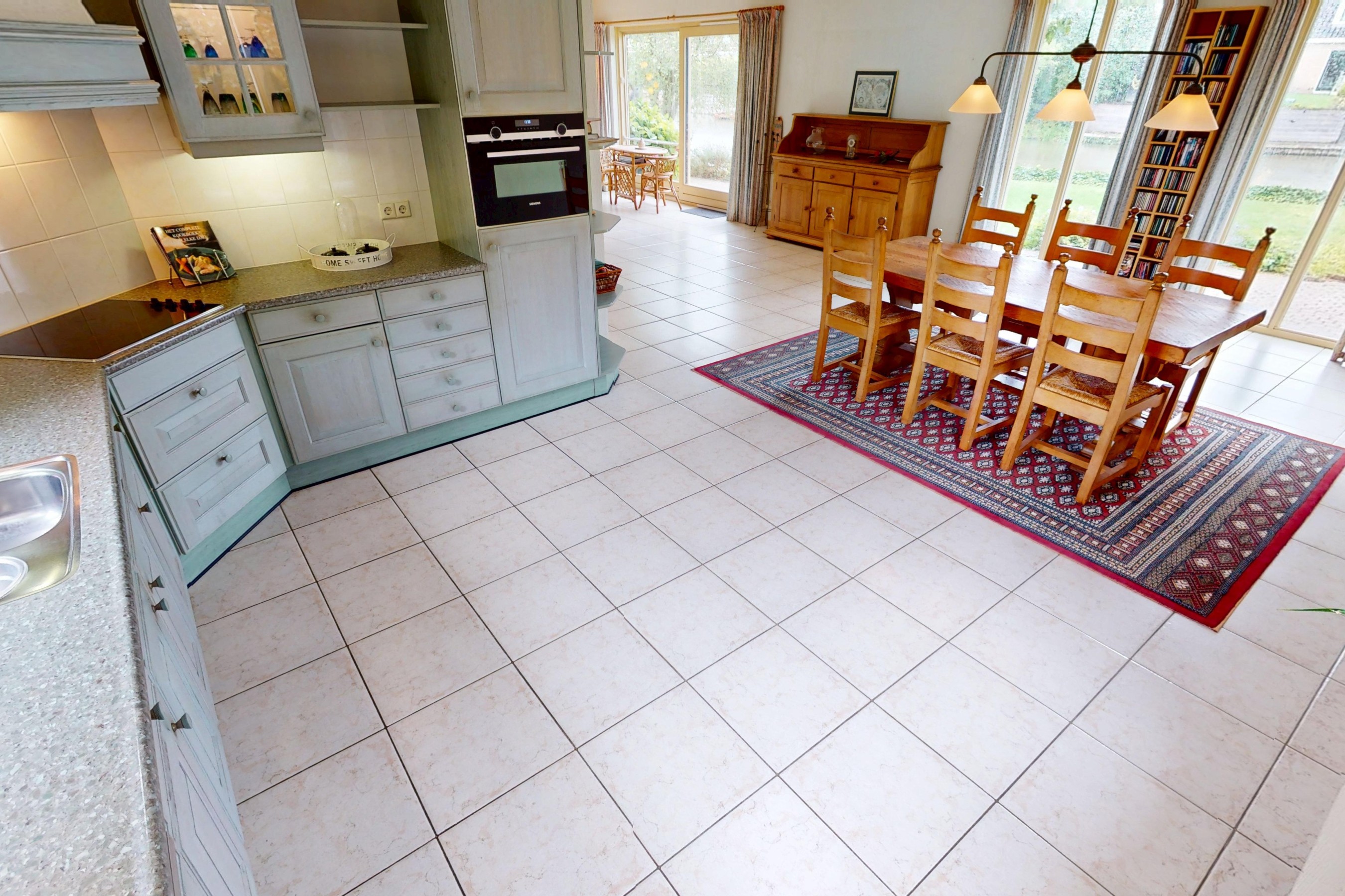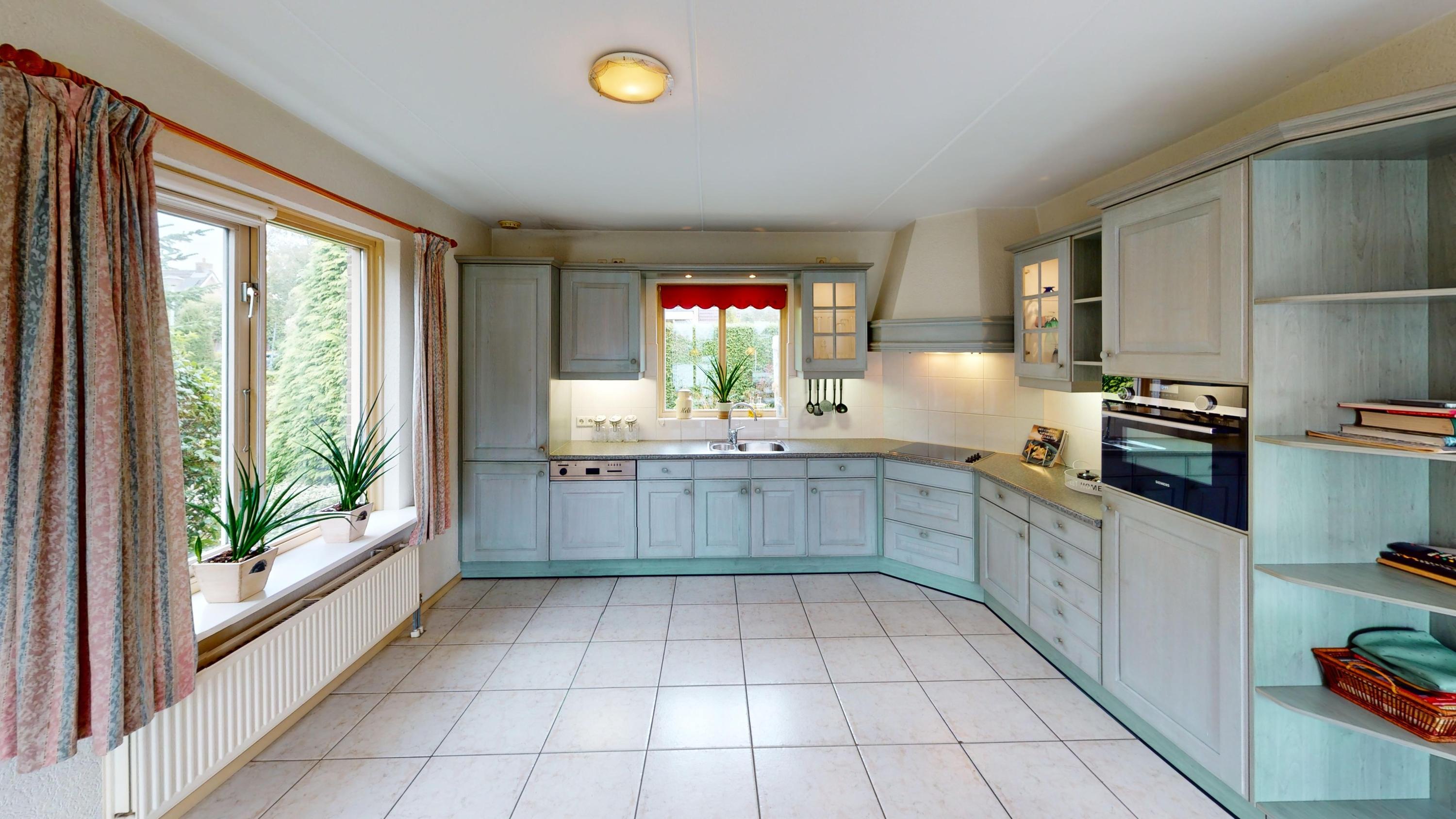 De woon/leefkeuken bevindt zich aan de achterzijde van de woning en betreft een massief eiken keuken. De keuken is in L-vorm uitgevoerd, waardoor u veel werkruimte tot uw beschikking heeft. De keuken is verder voorzien van een afzuigkap, keramische kookplaat, combimagnetron en koel/vriescombinatie. U heeft eveneens de mogelijkheid voor het plaatsen van een vaatwasser. In deze ruimte kunt prima een grote eetkamertafel kwijt, waardoor u fijn met het gezin of vrienden kunt natafelen of ’s avonds fijn samen een spelletje doen.