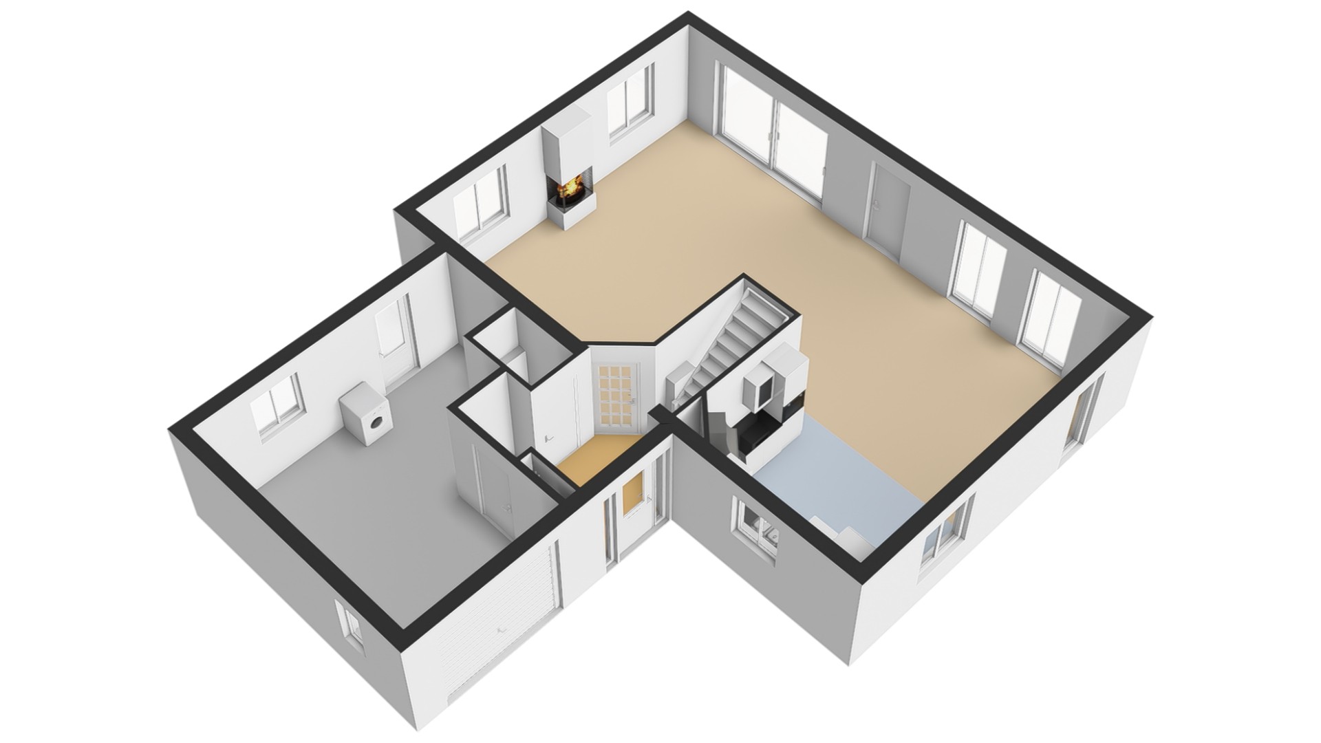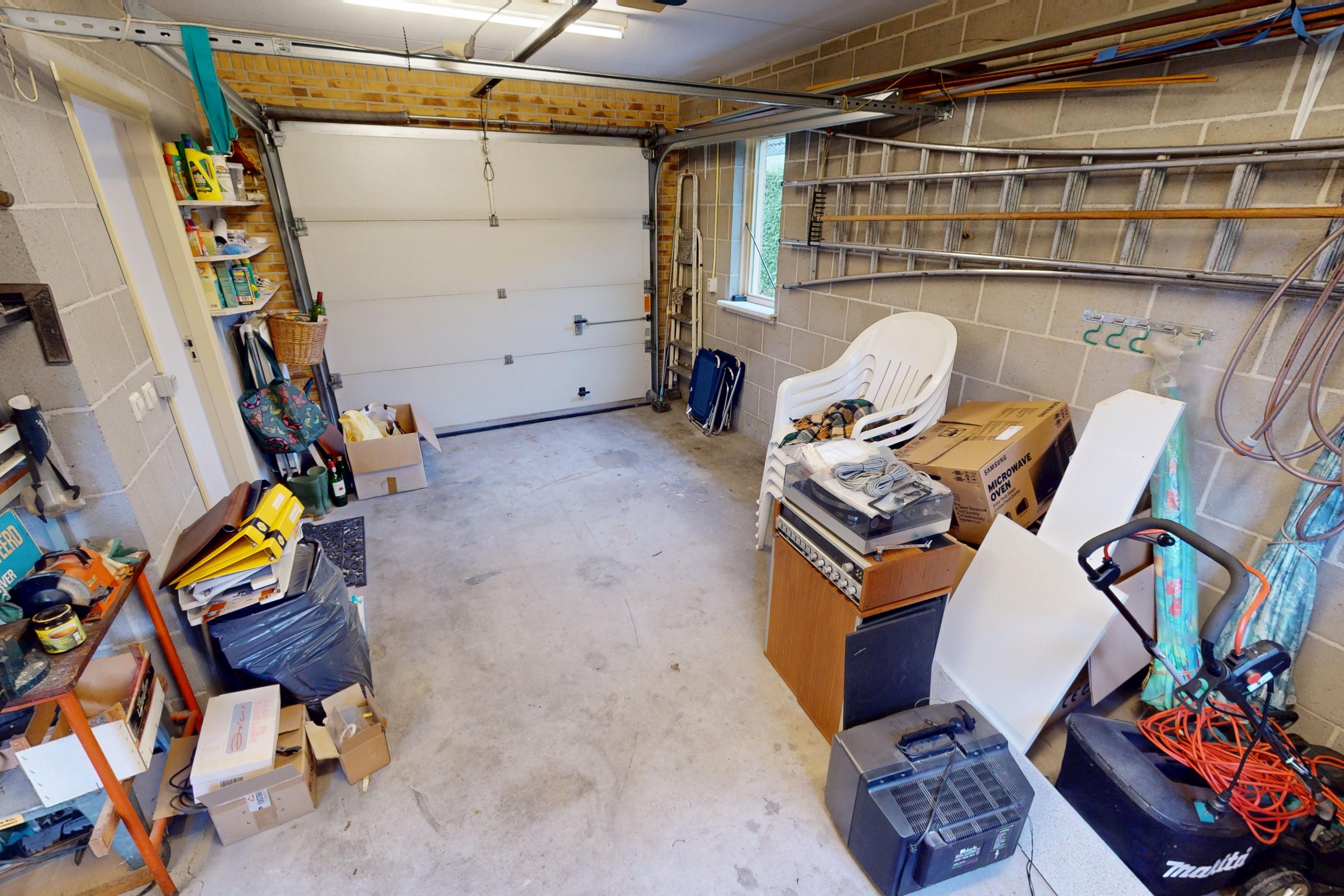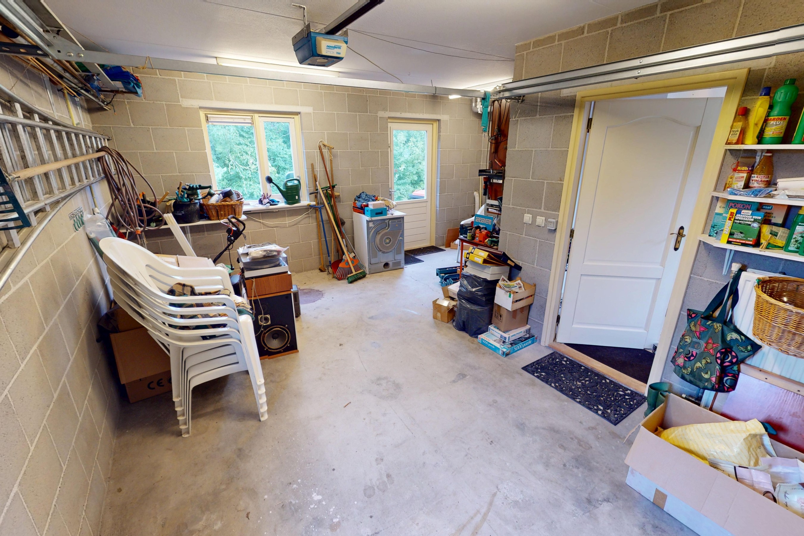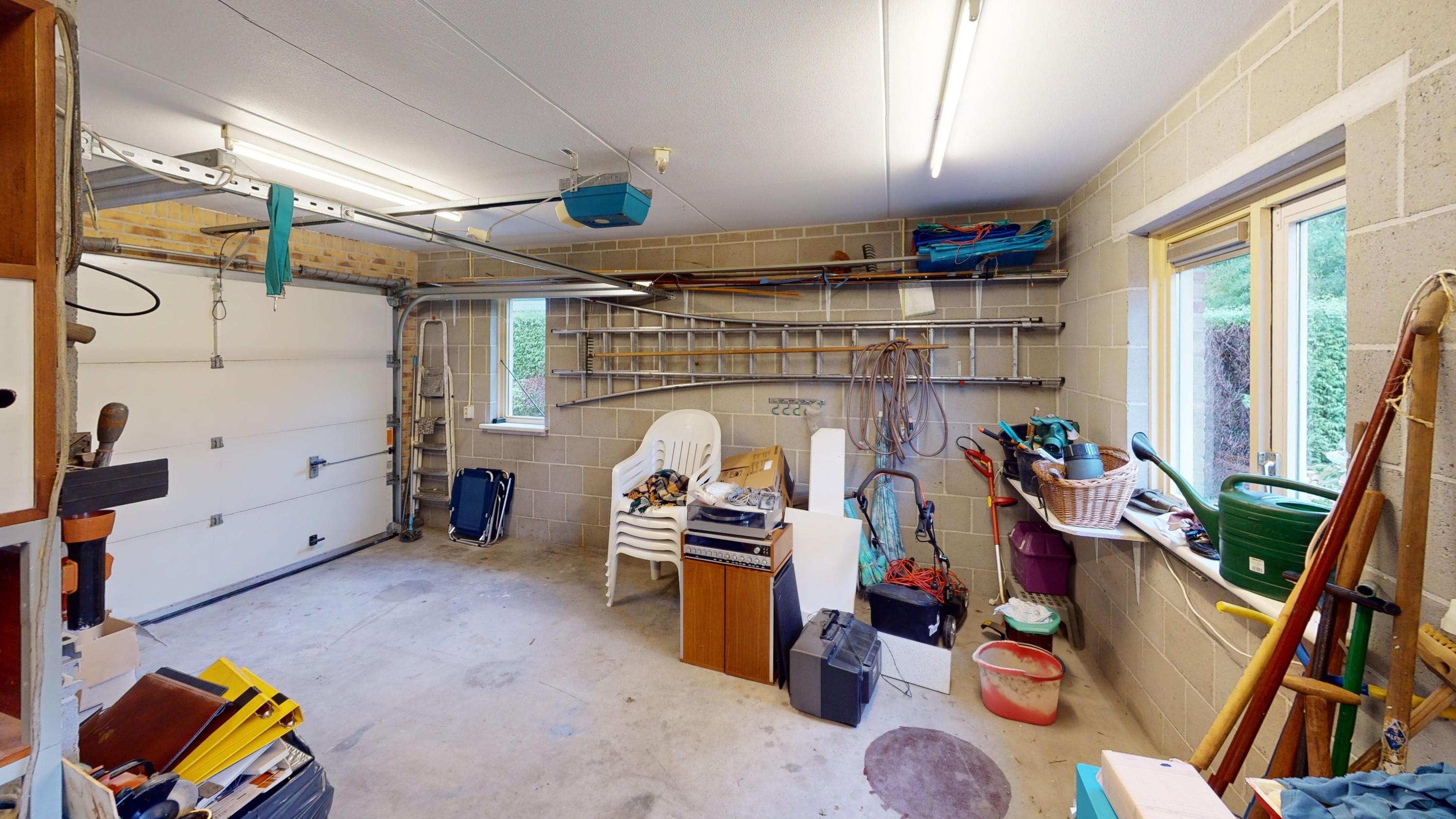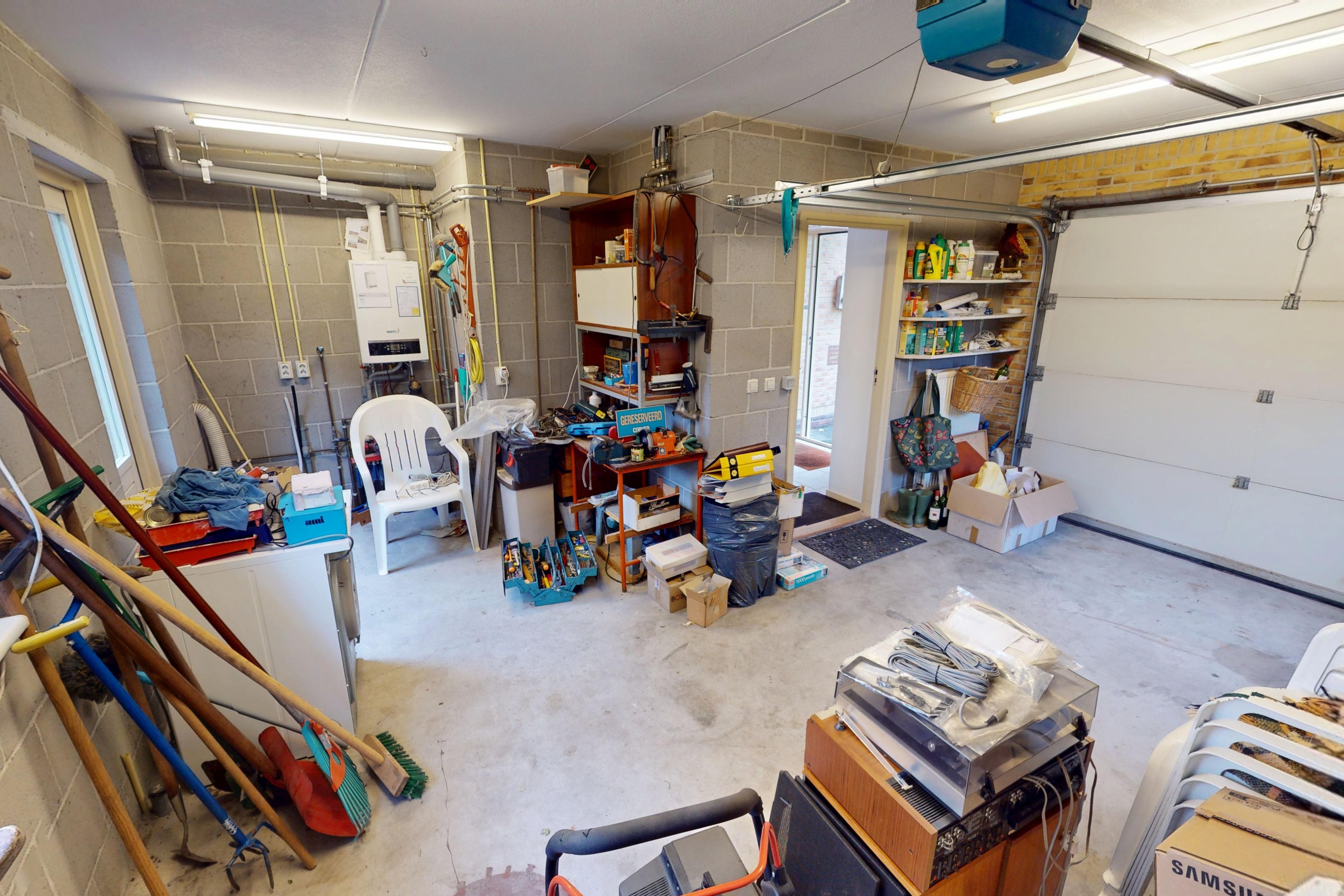 Garage: de inpandig bereikbare garage heeft ruime afmetingen. Aan de voorzijde treft u een elektrische sectionaaldeur en aan de achterzijde heeft u een loopdeur tot uw beschikking. Via de loopdeur kunt u eveneens de tuin bereiken. De garage is fijn voorzien van een betonvloer en is tevens verwarmd. U kunt hier prima uw auto een plaatsje geven. Bovendien kunt u in de garage uw ook de wasmachine en wasdroger installeren. De CV-combiketel is eveneens ondergebracht in deze ruimte.
