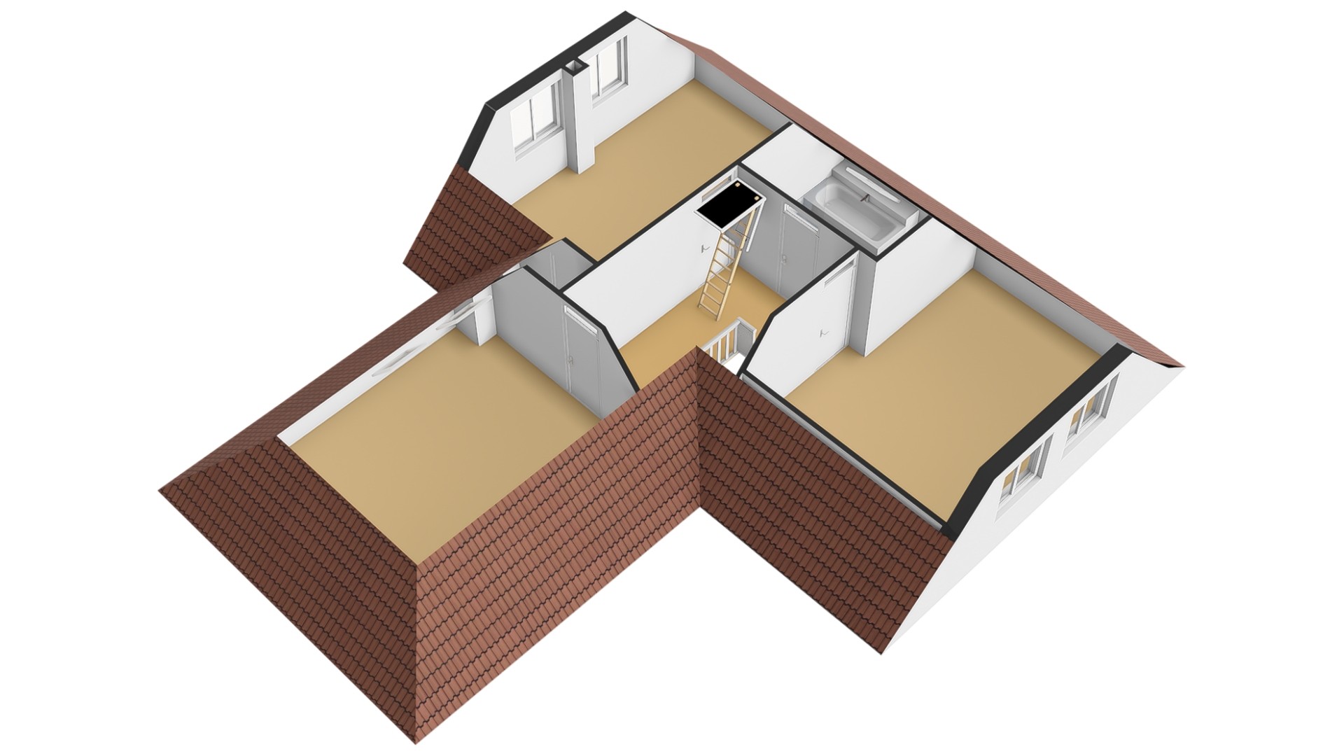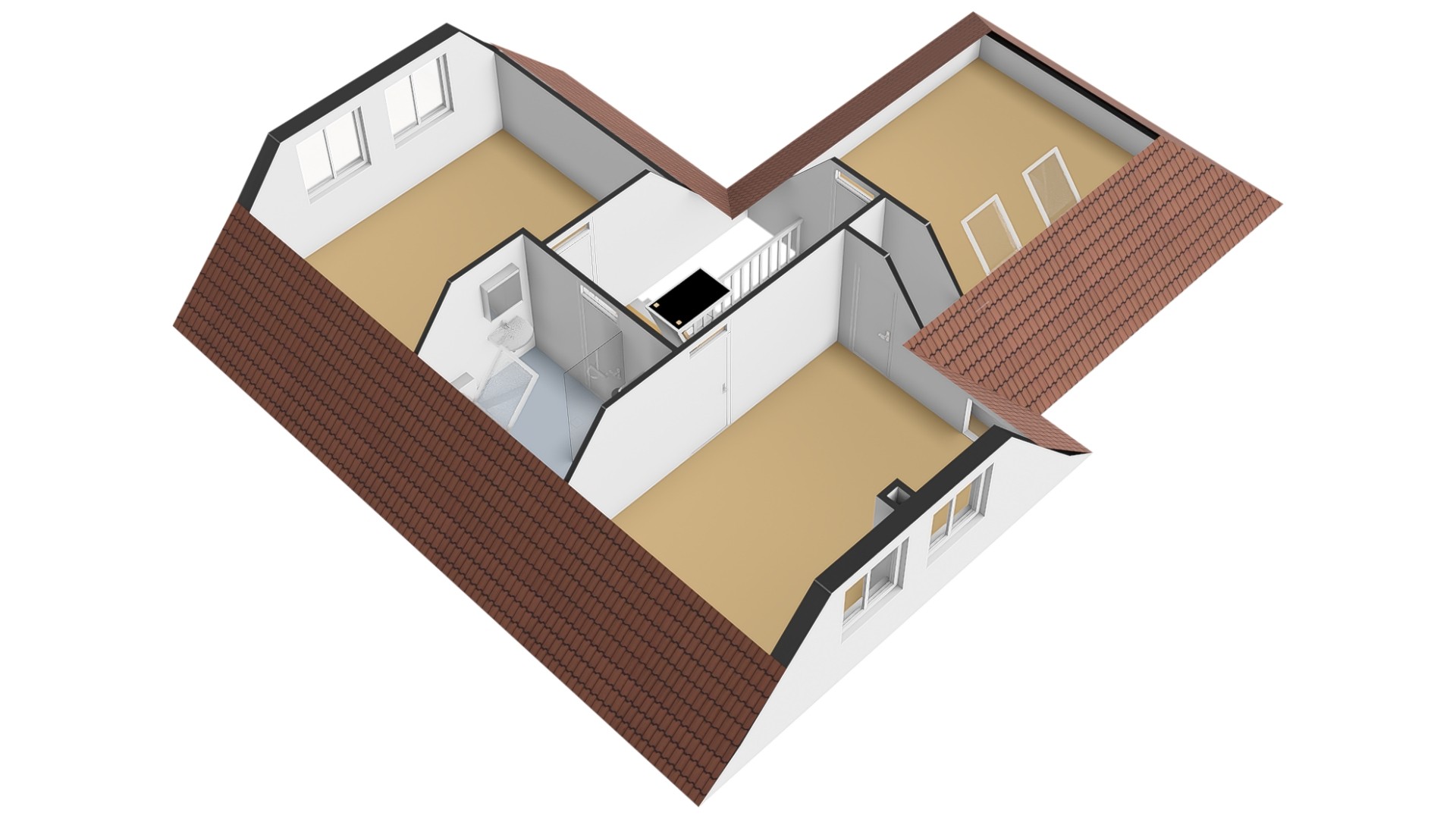 1e verdieping: op de 1e verdieping zijn een 3-tal slaapkamers van verschillende afmetingen ingedeeld. Iedere slaapkamer heeft zo z’n speelse details. U zult verbaasd zijn over de ruimte die deze woning u op deze etage zal bieden! Beide slaapkamers aan de achterzijde zijn over de volle breedte van de woning uitgevoerd. Een van de slaapkamers is uitgevoerd met een ruime vaste kastenwand. De slaapkamer boven de garage is eveneens een riante kamer. Deze kamer is voorzien van 2 dakramen. In alle slaapkamers kunt u prima een 2-persoonsbed plaatsen. Heeft u meer slaapkamers nodig? Geen probleem, u kunt eenvoudig op deze etage 4 of 5 slaapkamers realiseren.