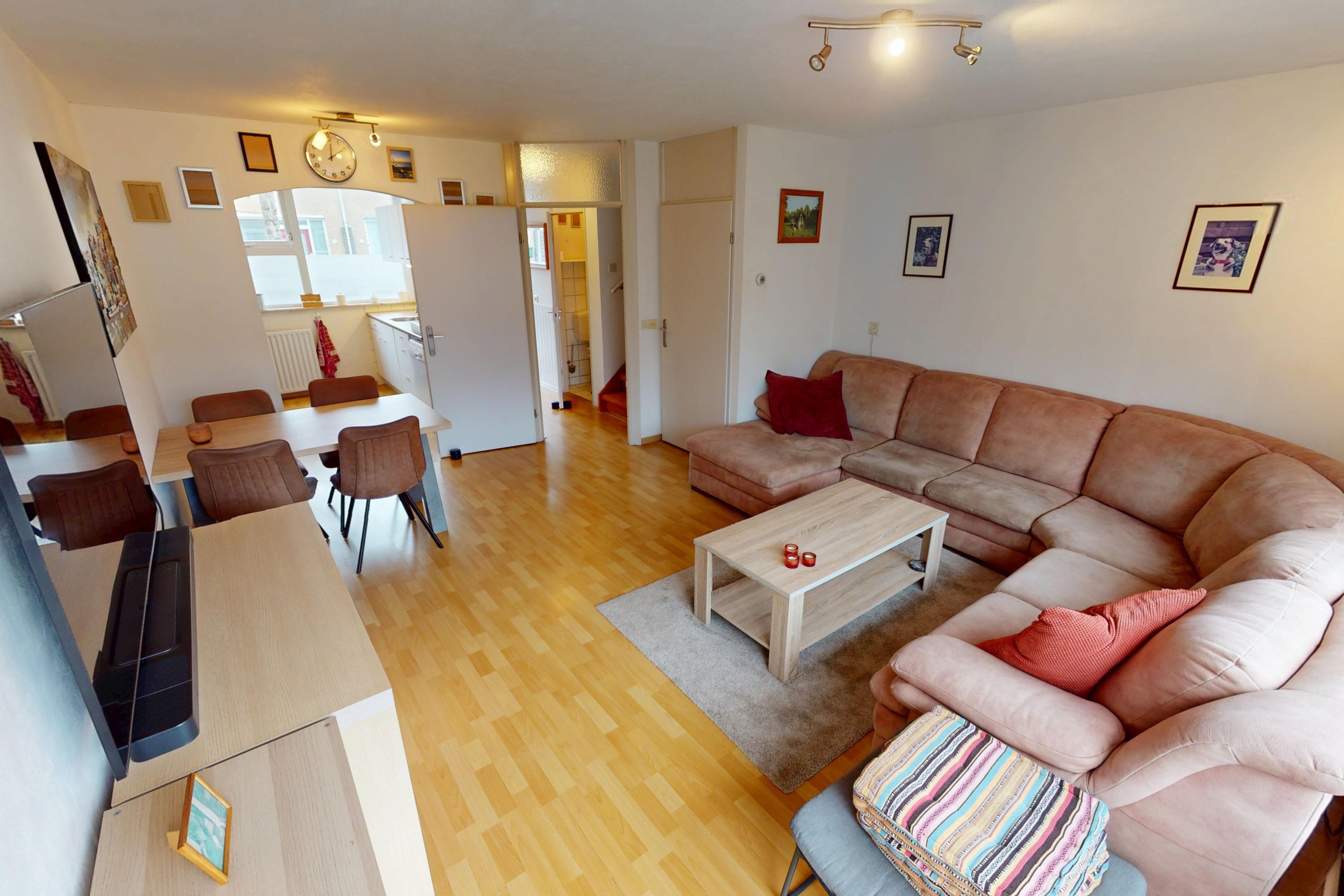 De tuingerichte woonkamer geeft u met de openslaande tuindeur direct toegang tot de achtergelegen terrastuin op het westen. Door de vormgeving van de living kunt u op diverse wijzen uw interieur inrichten. Vanaf de bank heeft u ook een heerlijk uitzicht op de tuin. Door de gunstige ligging van deze woning heeft u veel privacy in uw living. Op de vloer treft u een laminaatvloer, de wanden en het plafond zijn keurig netjes afgewerkt. In de ruimte heeft u een ruime trapkast tot uw beschikking. Altijd handig om uw spulletjes een plekje te geven.