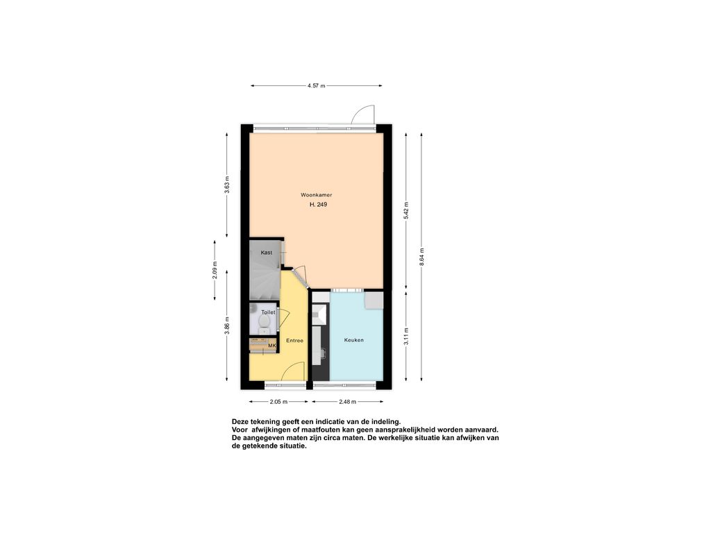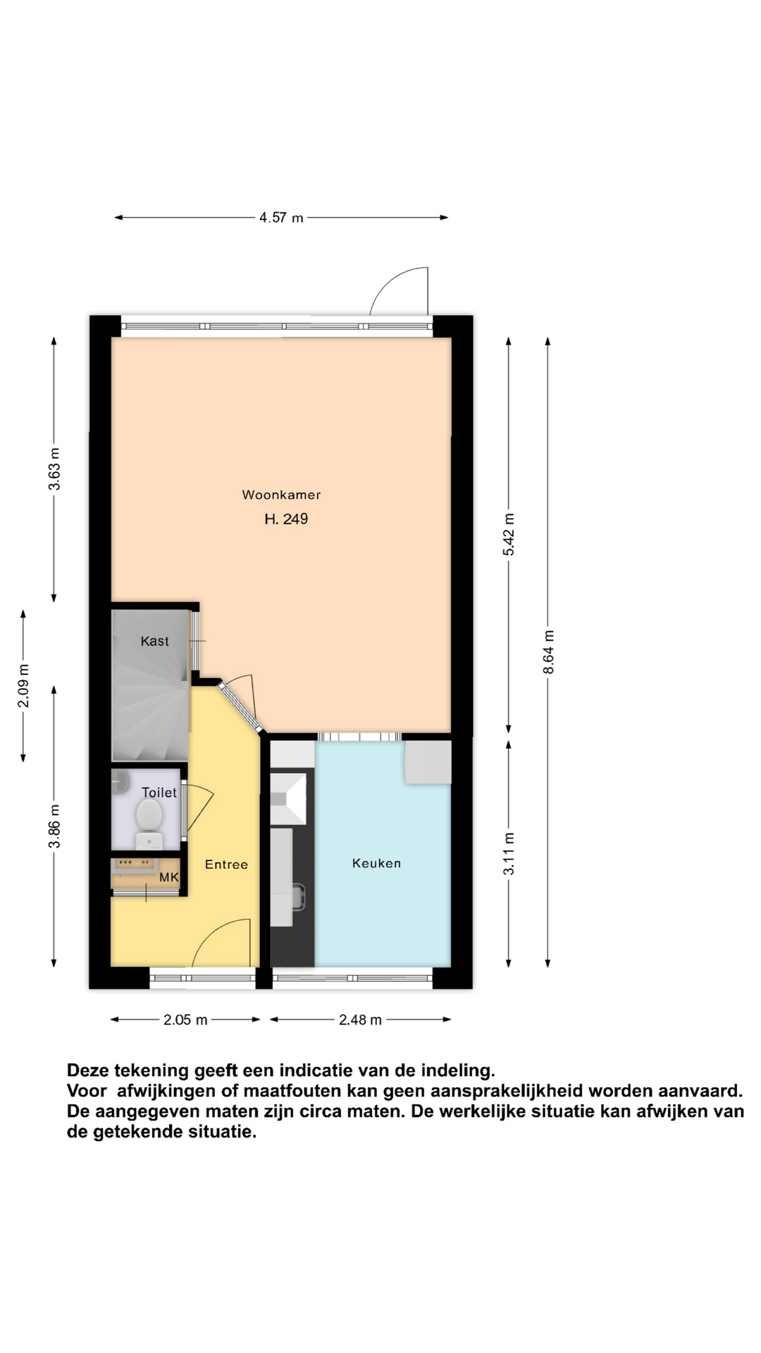 Begane grond: via de entree komt u in de hal met garderobe, meterkast en toiletruimte met closet en fonteintje. Vanuit deze hal kunt u ook de 1e verdieping bereiken.