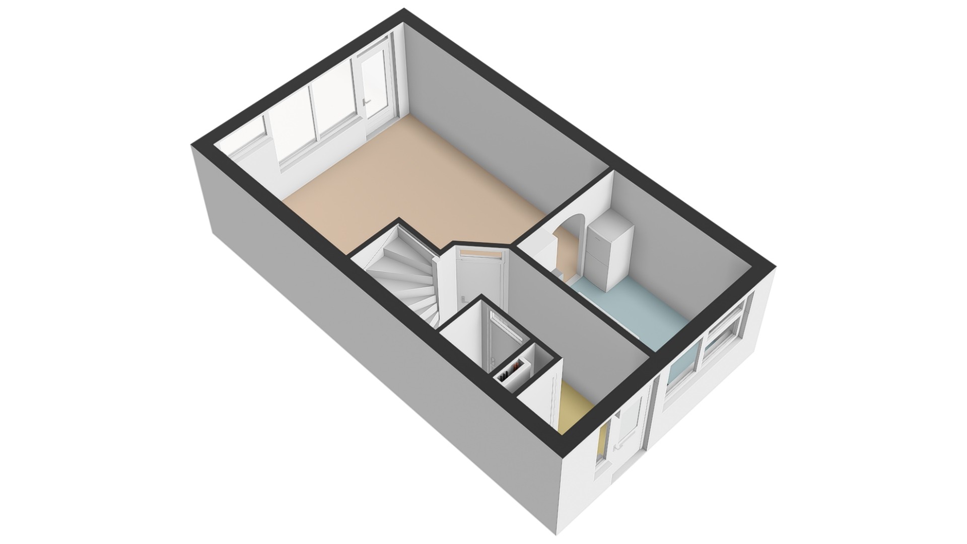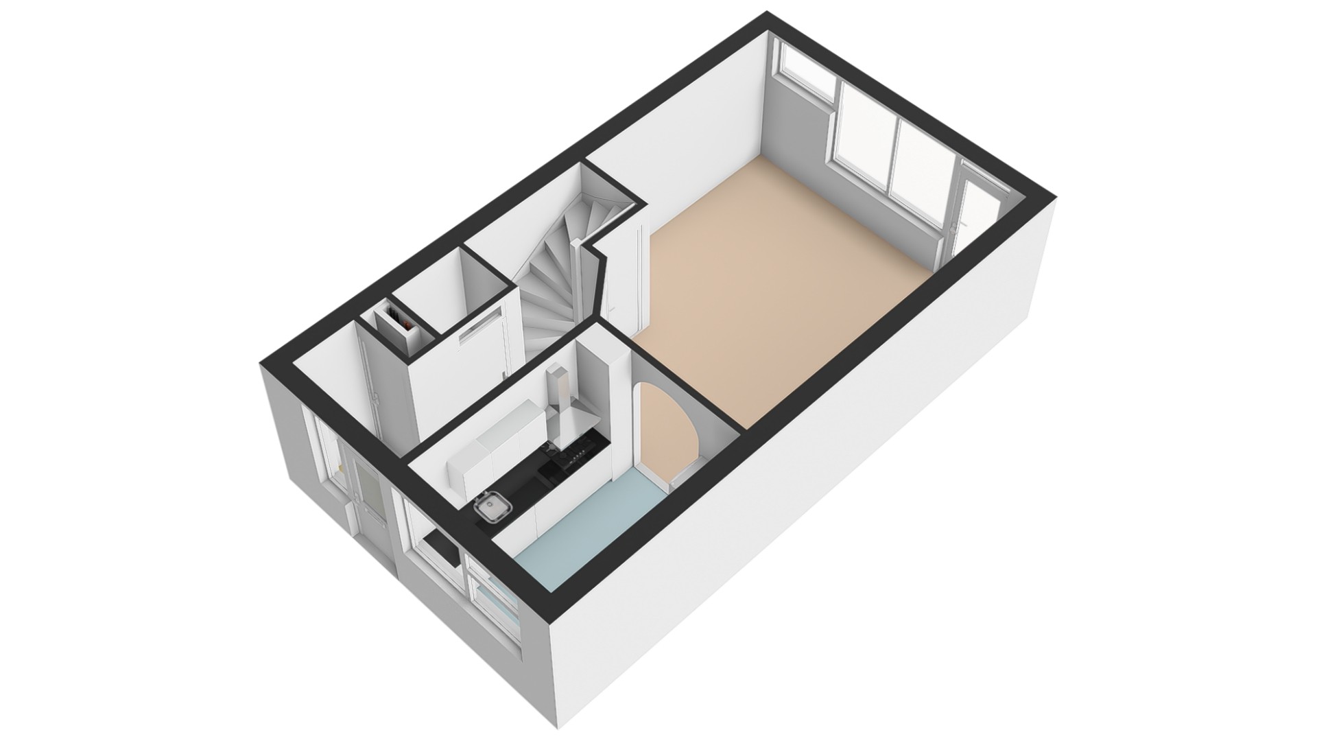 Middels een toog kunt u de functionele open keuken bereiken. Deze keuken is aan de voorzijde van de woning gelegen. Vanuit de keuken heeft u zicht op de straat en openbaar groen. De keuken is in rechte optelling geplaatst. Aan apparatuur heeft u een 4 pits gaskookplaat, vaatwasser en een afzuigkap tot uw beschiking. U heeft hier eenvoudig de mogelijkheid om een keuken in een L- of U-opstelling te plaatsen.