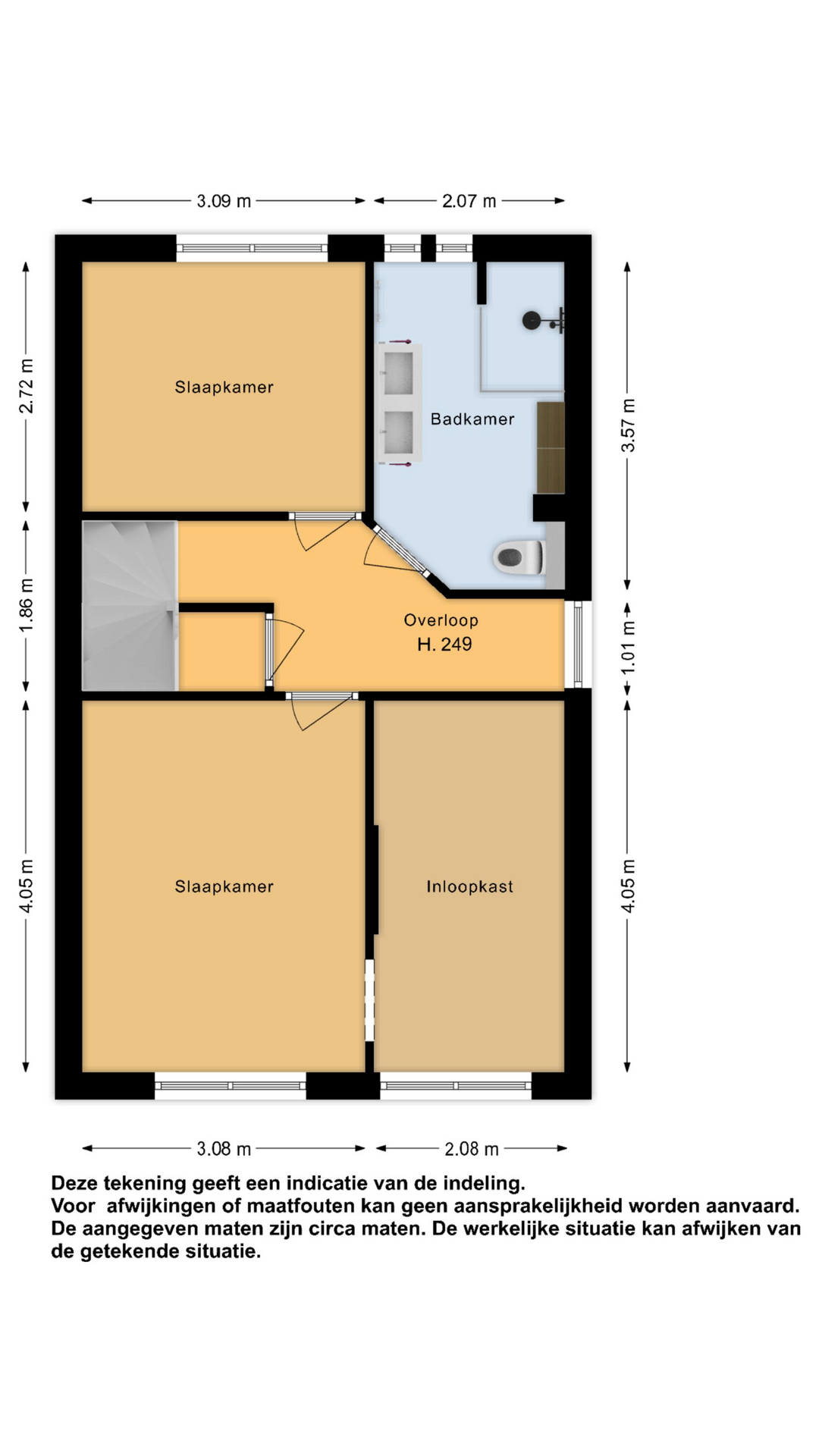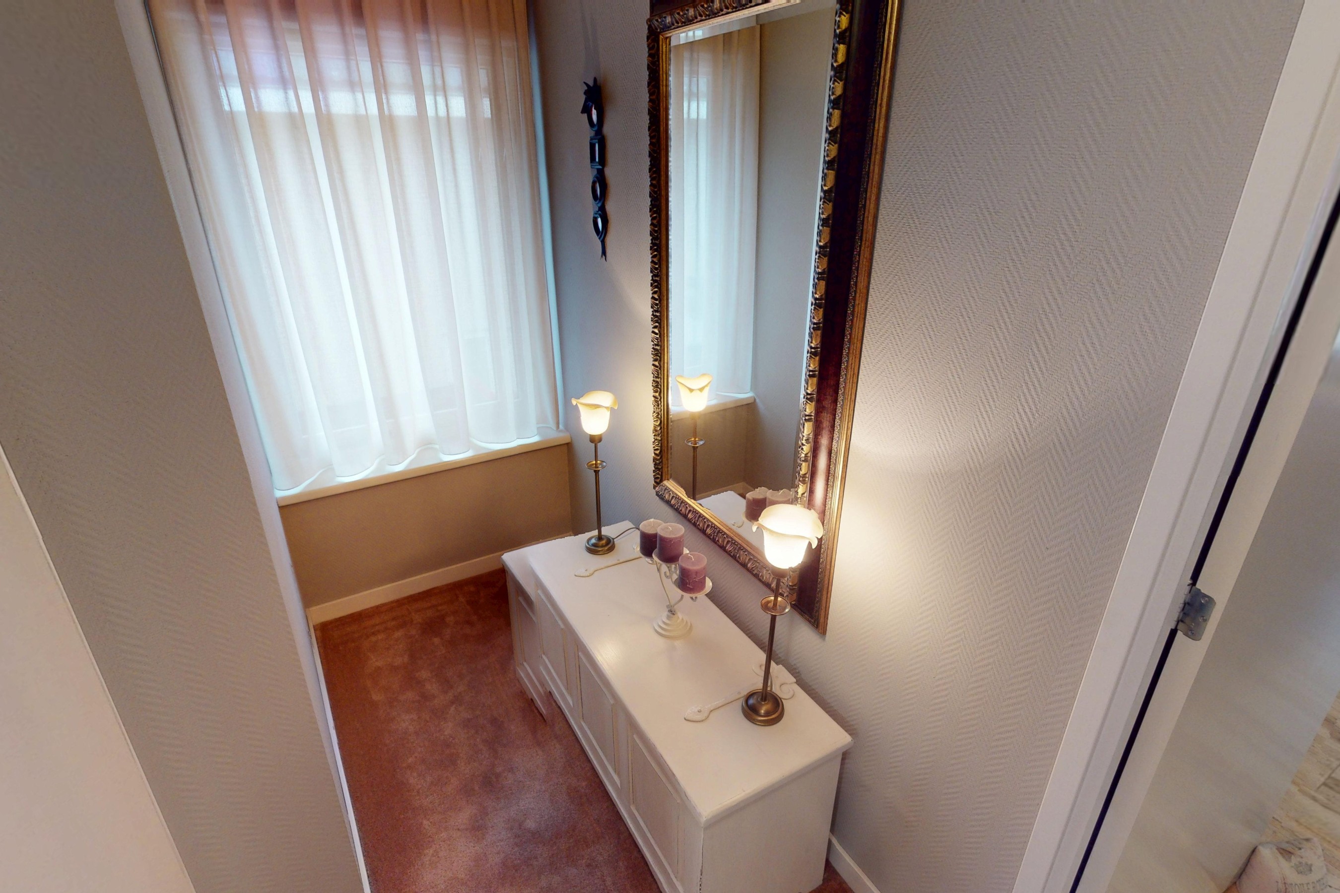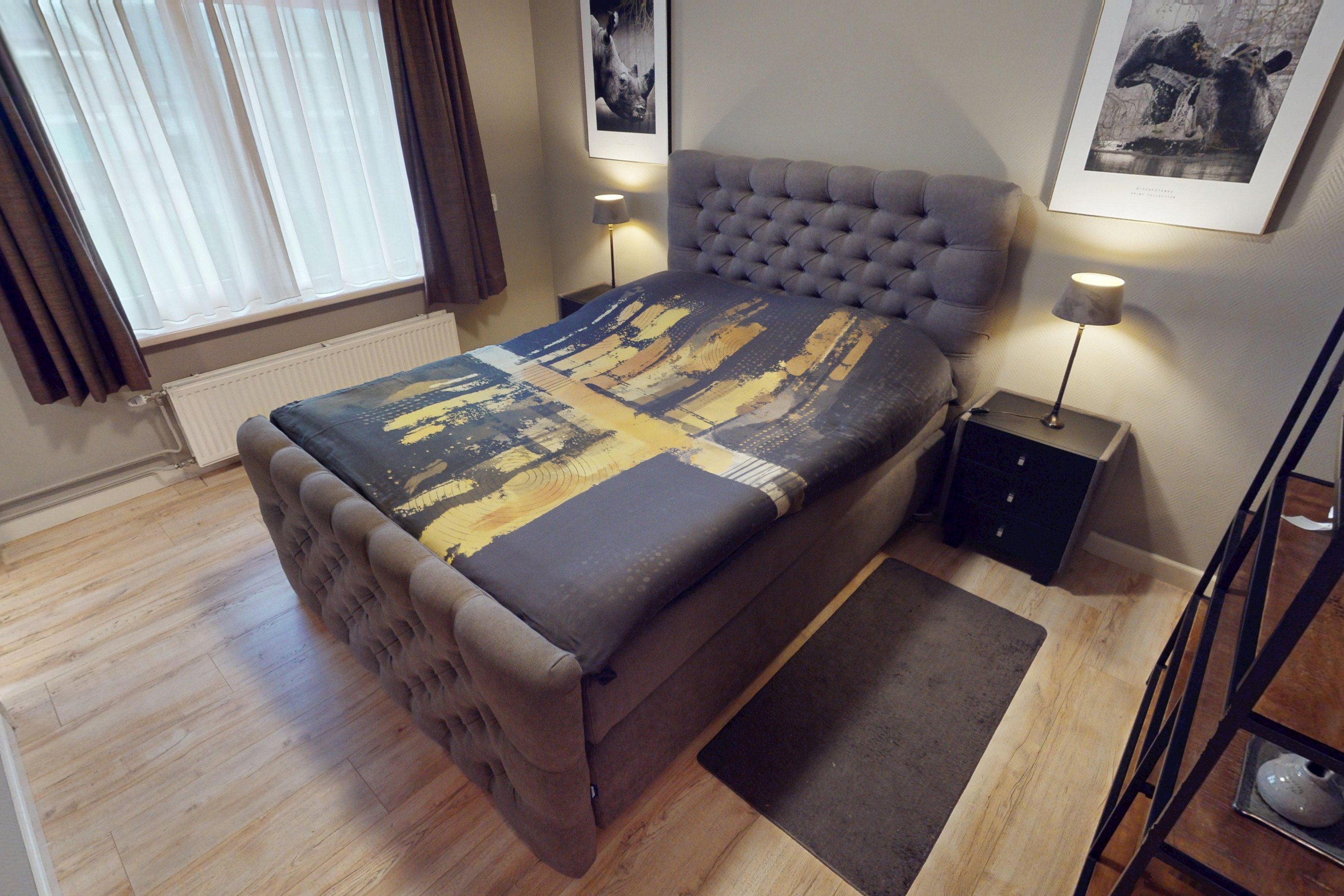 1e verdieping: op de 1e verdieping zijn naast de ruime overloop een 2-tal slaapkamers van verschillende afmetingen gesitueerd. Door de recht opgetrokken wanden heeft u hier veel ruimte tot uw beschikking. Het geheel ziet er zeer verzorgd uit! Een van de slaapkamers is fijn uitgevoerd met een inloopkast, waar u vanzelfsprekend genoeg ruimte heeft om uw kleding een plekje te geven. Indien gewenst kunt u op deze etage weer de oorspronkelijke 3 slaapkamerts terugbrengen. Dan heeft u er in totaal 5 slaapkamers te pakken! Tezamen met de slaapkamers op de 2e etage kunt u thans in 3 slaapkamers een 2 persoons bed kwijt.