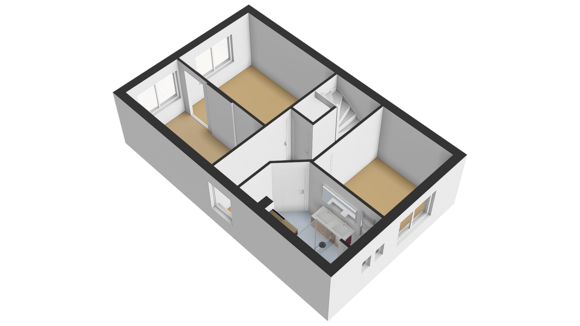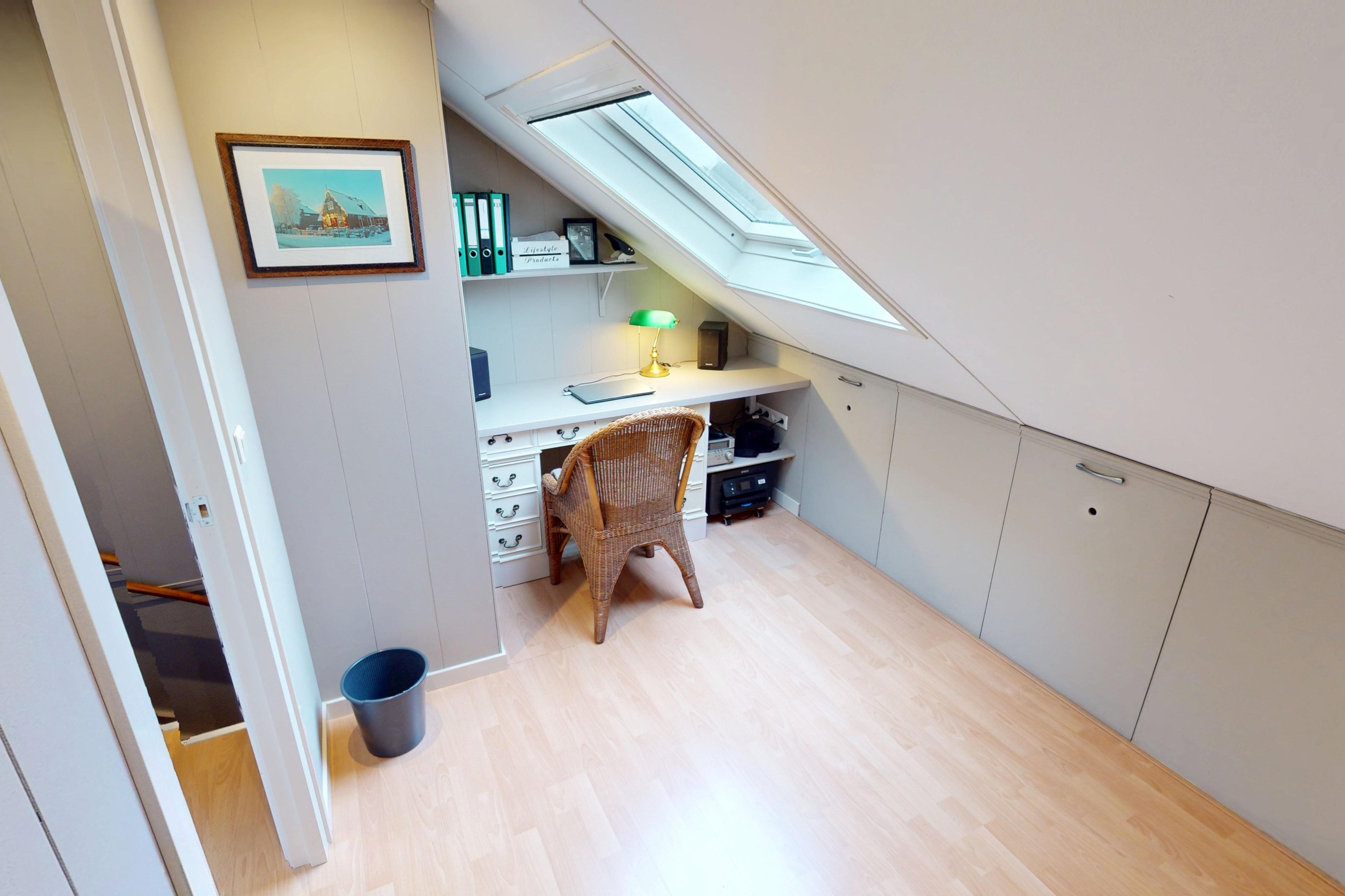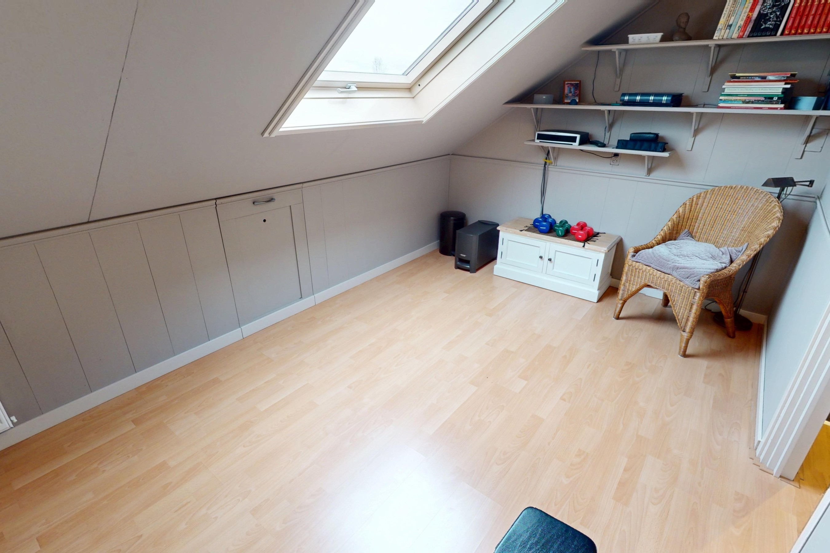2e verdieping: de 2e verdieping is met een vaste trap bereikbaar en hier zijn 2 extra slaapkamers gesitueerd. Beide slaapkamers zijn voorzien van een dakraam. De opstelling van de HR CV Combiketel treft u in de CV-ruimte. Deze verdiepingsvloer is afgewerkt met laminaatvloer. Achter de knieschotten heeft u extra opbergruimte.