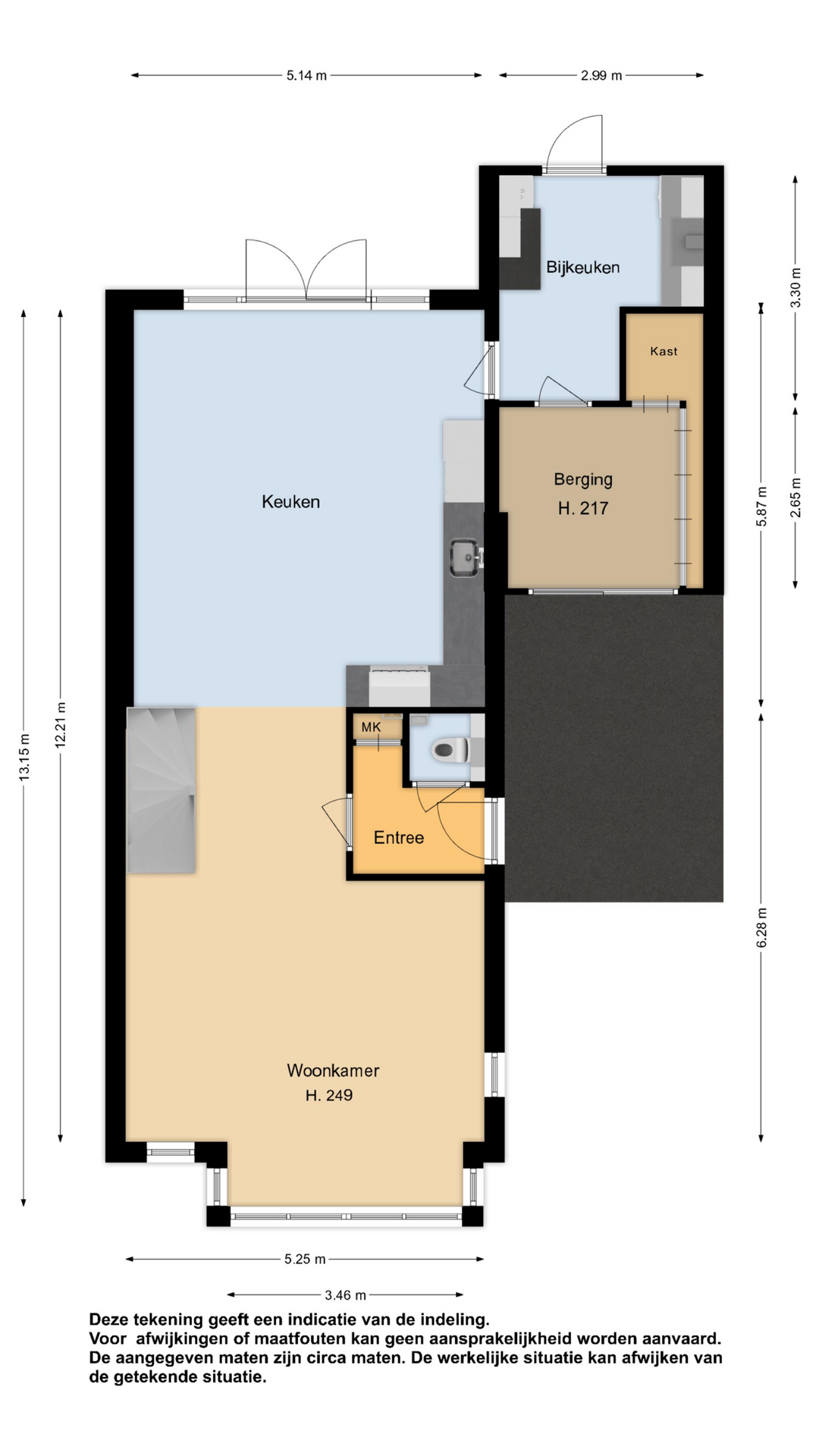 Berging: de inpandig bereikbare berging is voorzien van vaste kasten en biedt u ruimte voor de stalling van (motor-) fietsen. Deze berging wordt door de huidige bewoners als entree gebruikt. Hier kunt u dan ook prima uw jassen en/of schoenen een plekje geven. Op de ruime oprit met carport kunt u meerdere voertuigen parkeren.