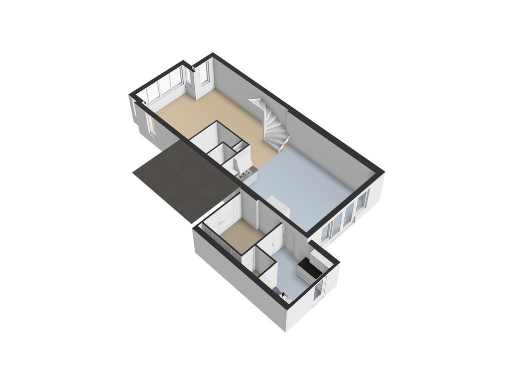 Begane grond: via de overkapping komt u aan de zijkant van de woning in de hal met meterkast, garderoberuimte en moderne toiletruimte met hangcloset en fonteintje.